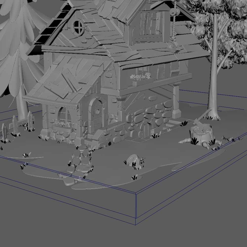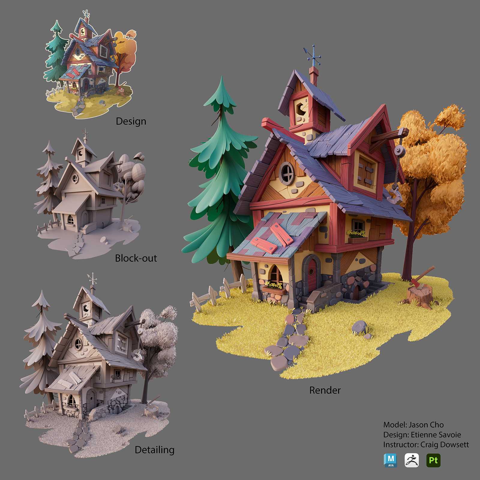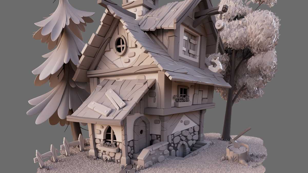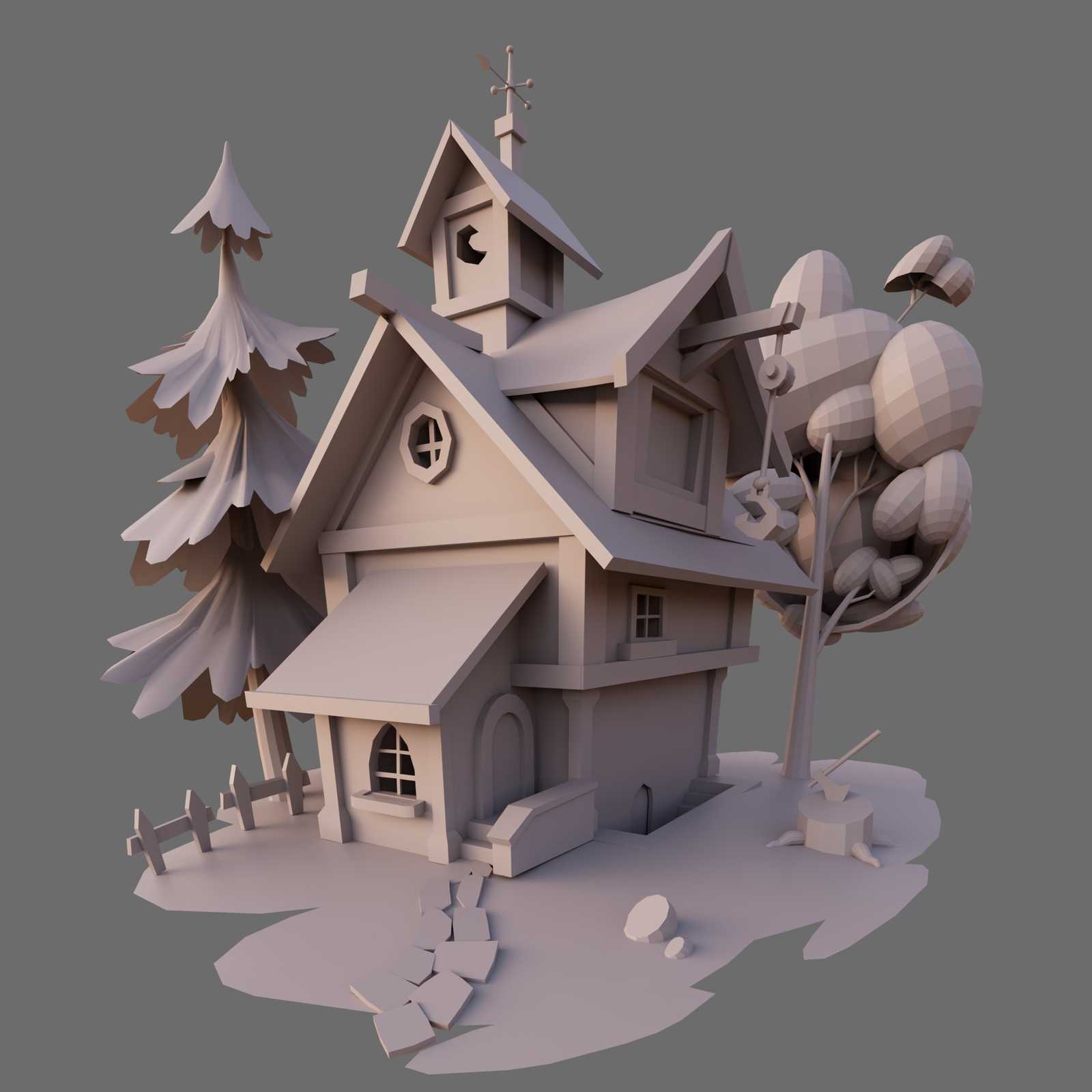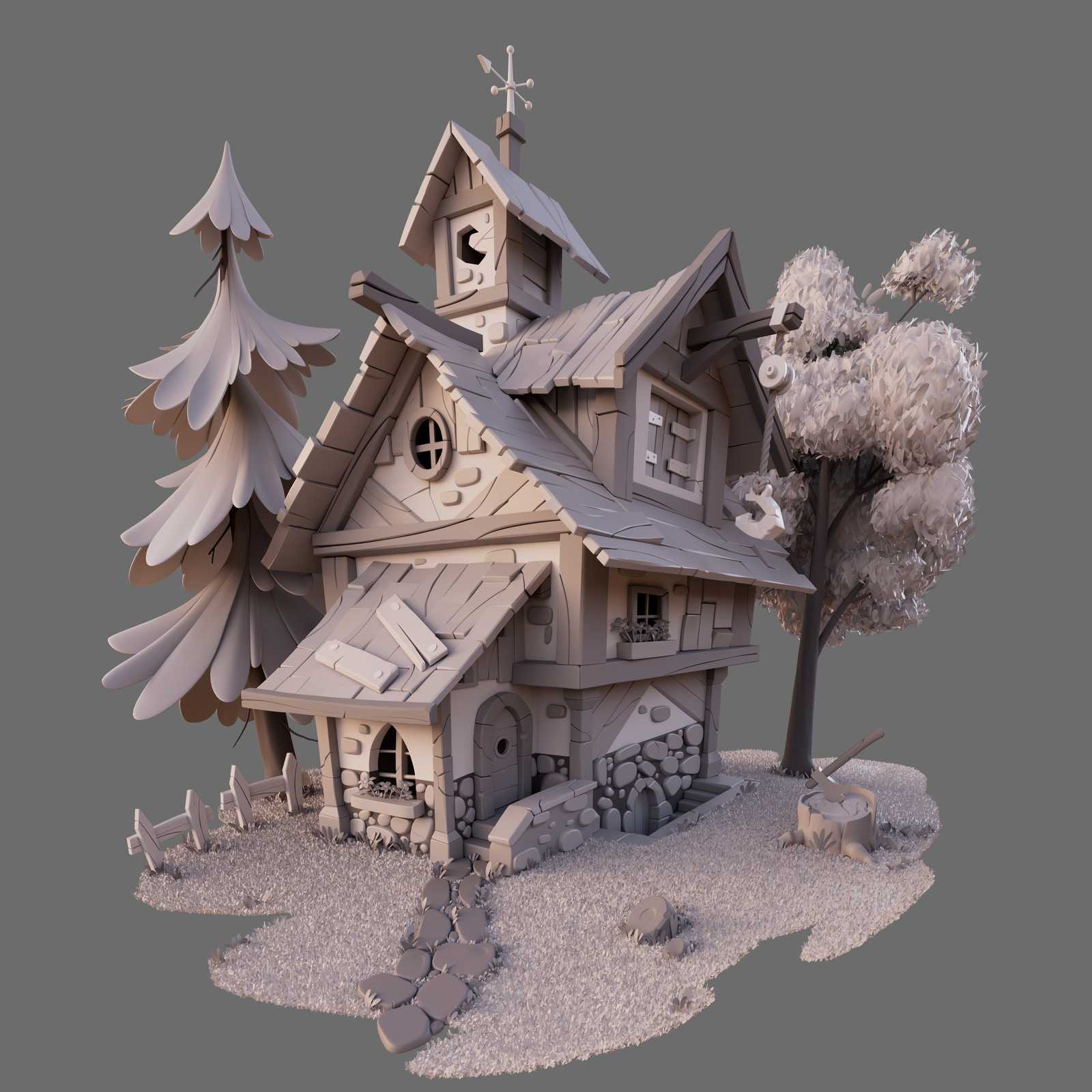 Here is a timelapse of the whole progress from the block out of the house, stones, trees, and up to the final texture. I had a lot of fun modeling the different elements of the piece from start to end!