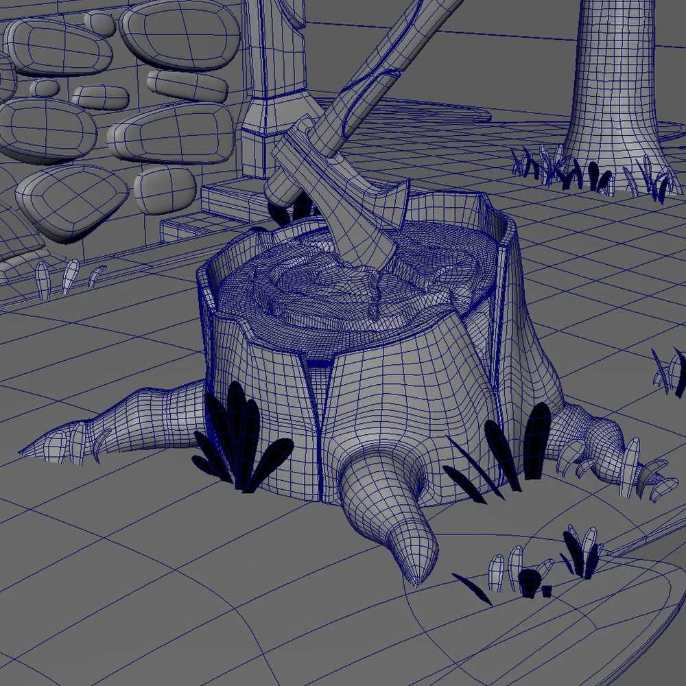 For the more organic models like the tree stump and the tree bark, I used Zbrush to sculpt some of the details of the roots and surface of the tree bodies. By using the sculpting tools, I was able to get a first pass of the shapes I wanted then I further refined it in Maya.